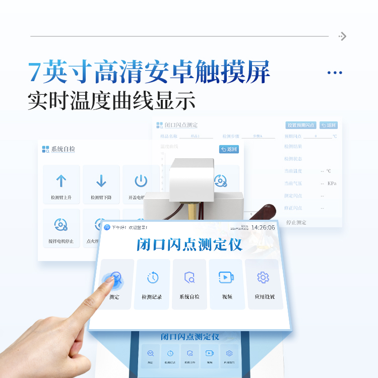 仪器按照GB/T 261-2021方法规定的升温曲线加热,温度接近预期闪点值时自动点火,当出现闪点时仪器自动锁定结果,并显示和打印,同时启动风机自动对加热器进行冷却。